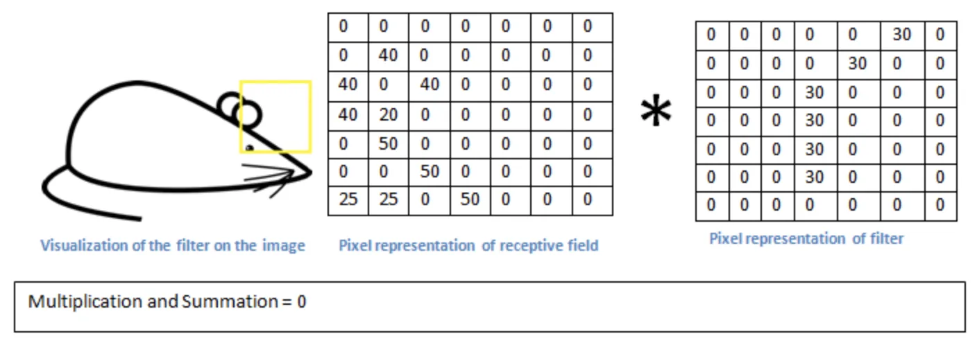 Let’s apply the filter to the upper-left corner of the original image, perform the convolution operation and calculate the output value.