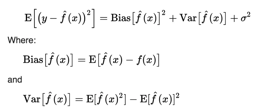 Formular bias-variance tradeoff decomposition