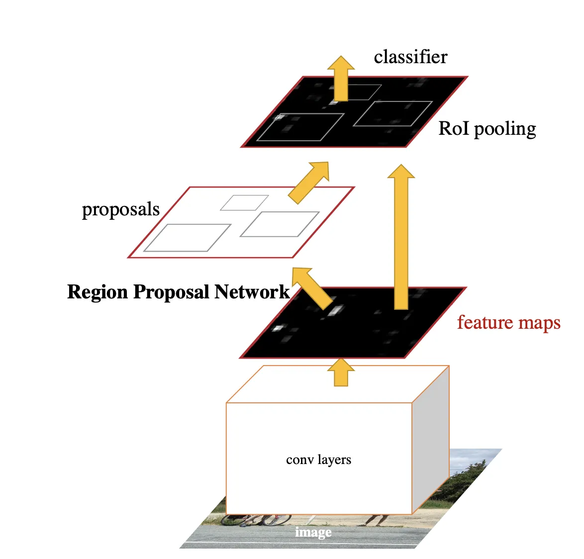 ‌Finally, the RoI pooling layer converts generated proposals of variable sizes to a fixed size to run a classifier and regress a bounding box on top of it.