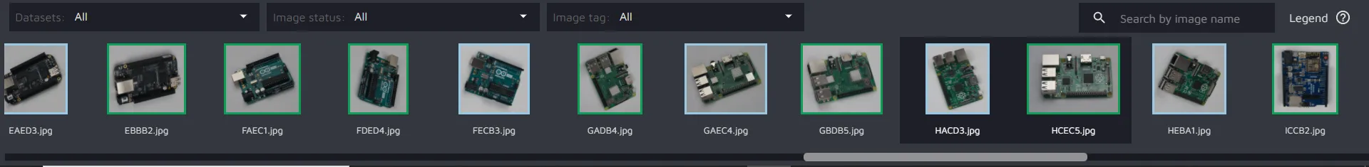 You can also filter the images being shown here by dataset and image status. Just go to the filter you want to adjust at the top right of the image gallery, click on it, and pick what filter should apply.