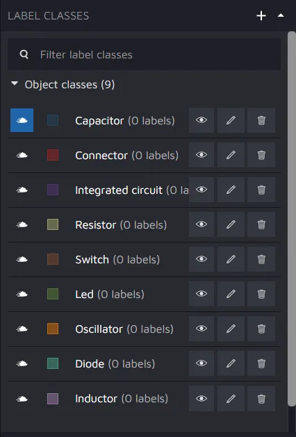 What's really important to understand here is the concept of "active class". As Hasty is a tool built for speed, we decided that we wanted to allow users to create many different annotations with the same class as quickly as possible. To that, when you select a specific class as an "active class" by clicking on the hedgehog icon to the left of class name, every new annotation being made will have that class assigned to it.