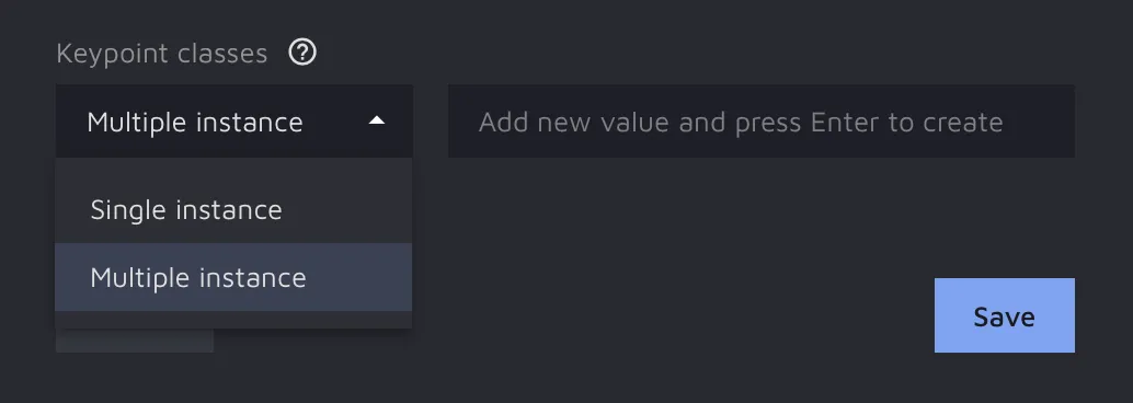 To create a keypoint class, please navigate to the Keypoint classes and select the type of the keypoint class you want to create: