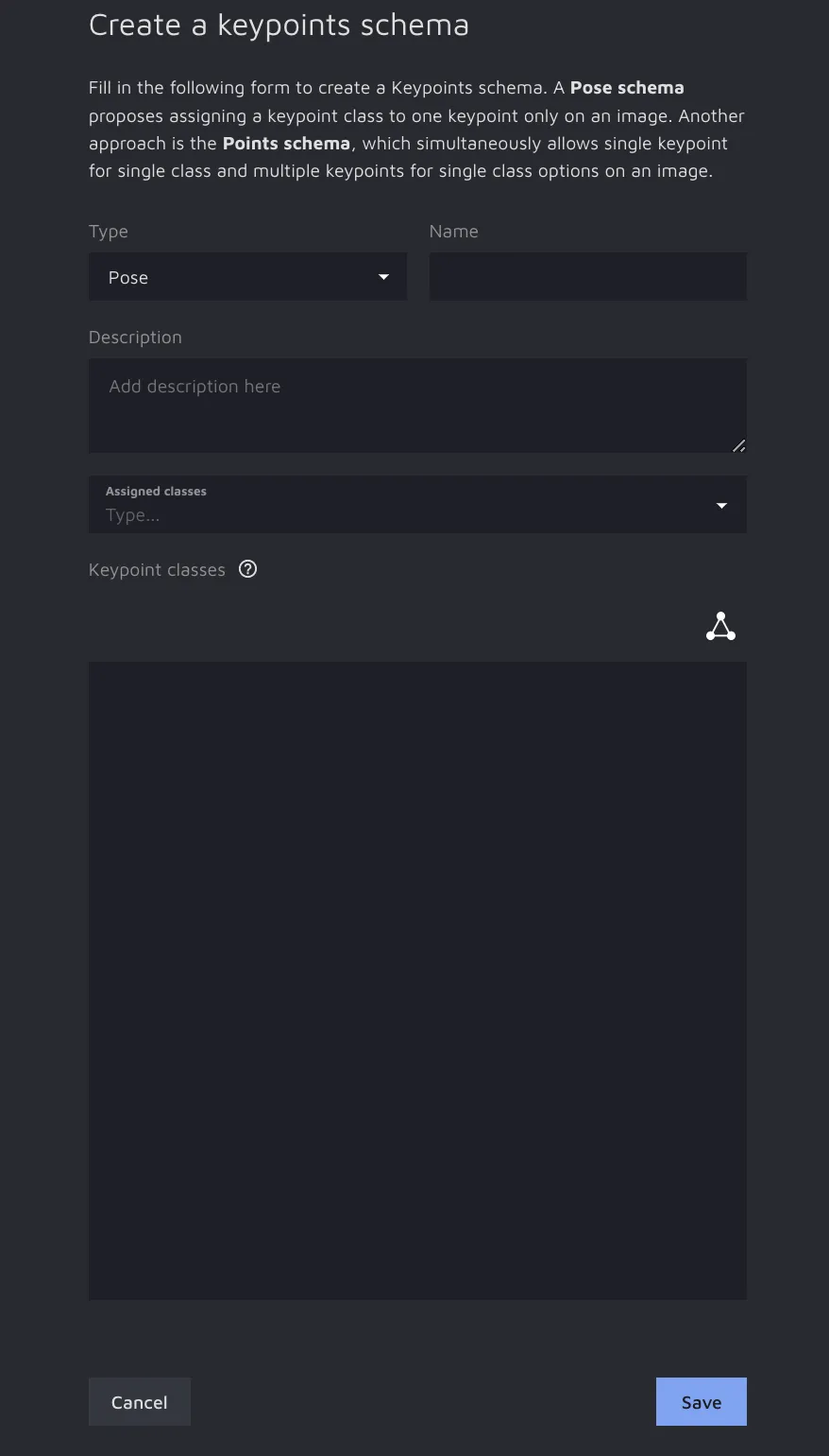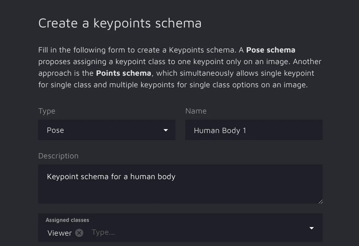 You will see a keypoints schema form you need to fill in according to your needs to create a proper schema.
