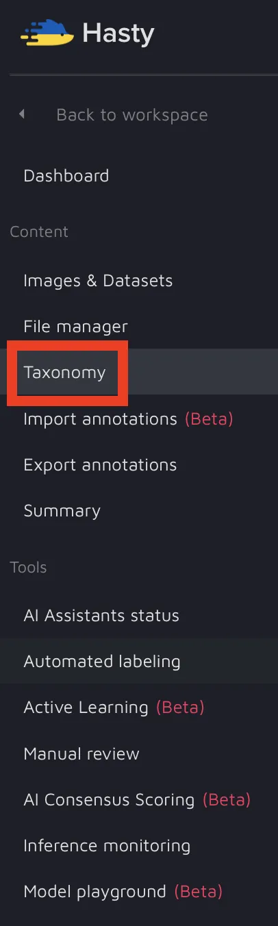Once you are done, click the save button, and Hasty will save your schema in the project’s taxonomy.