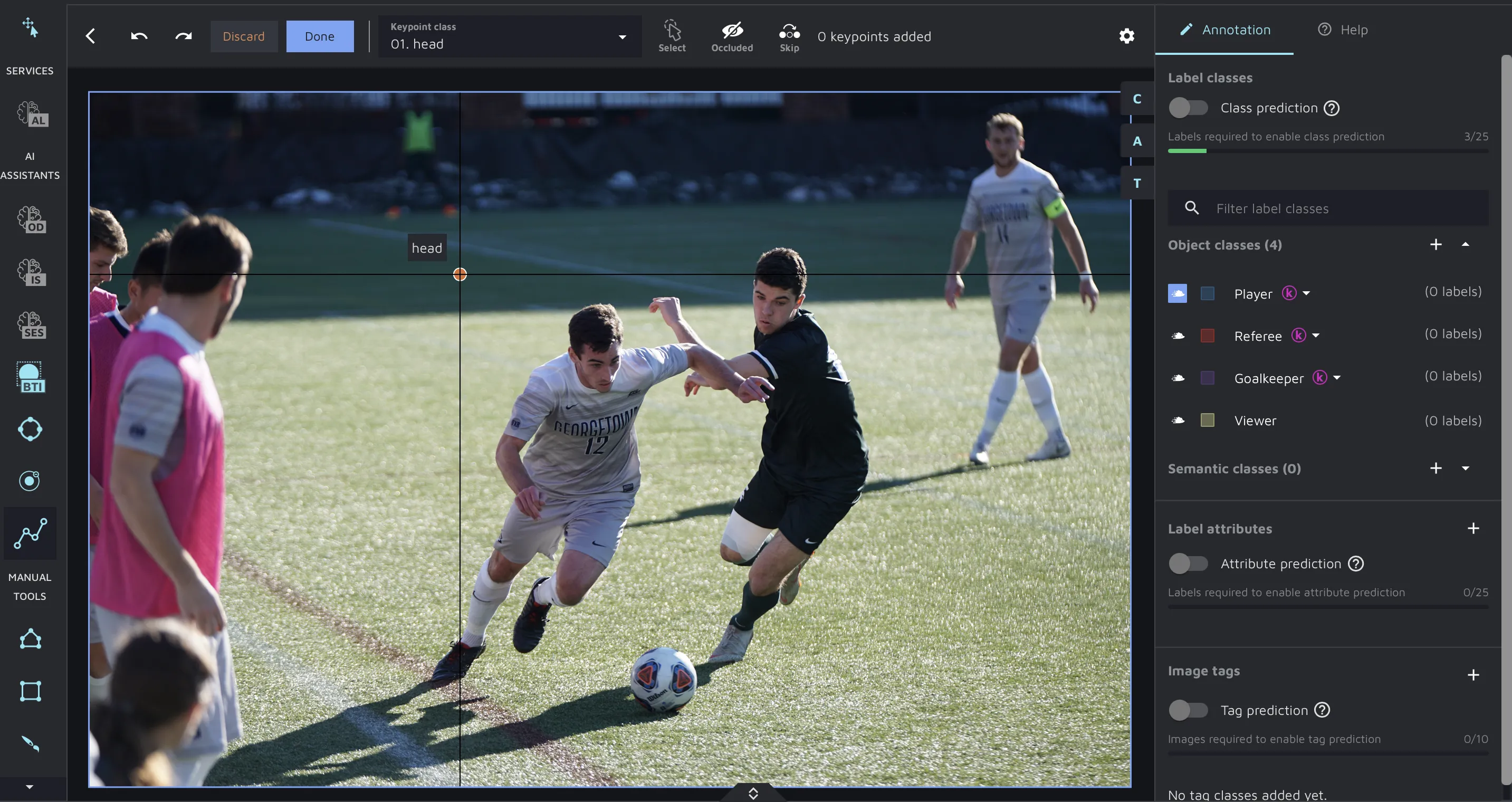 To activate the Keypoints feature, please navigate to the Annotation Environment and click on the Keypoints icon in the left tab.