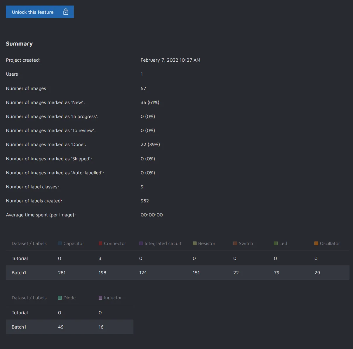 • Number of images: The total number of images in the project across all datasets;