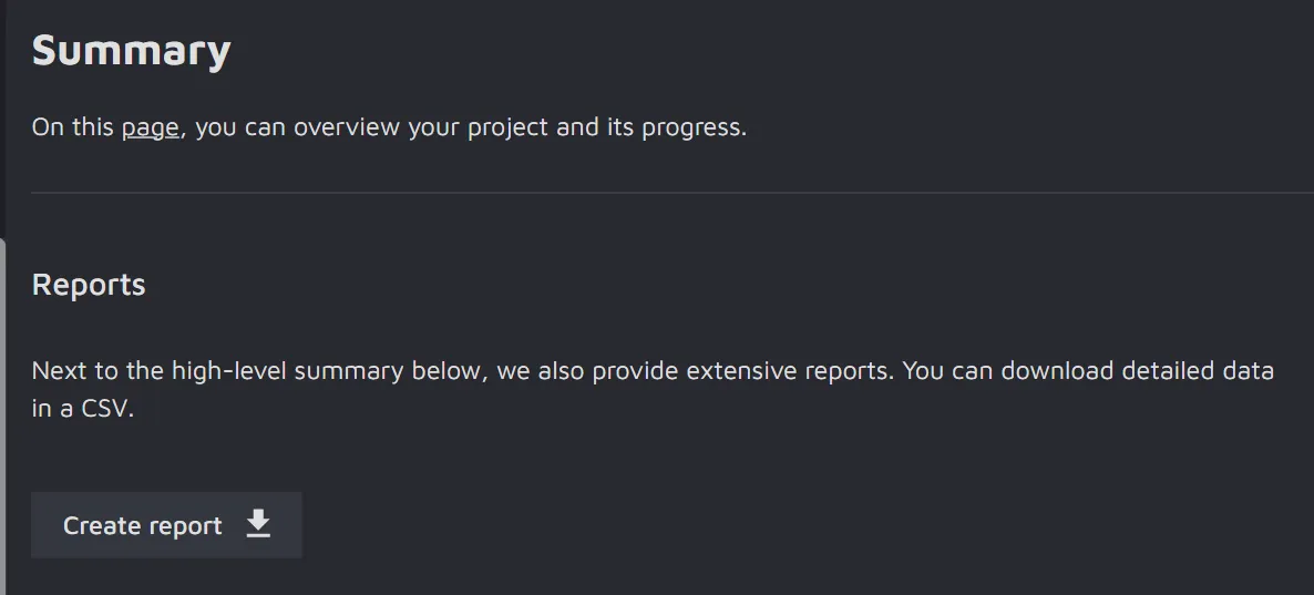 You can navigate to the Project reports feature directly from the Annotation Environment by going to Project → Summary → Create report.