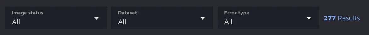As you may have noticed, AI CS results are not divided by error types. Instead, you can see all potential attribute errors per image. Still, if you want to use the filter by error type options, you can easily do so via the topbar options.