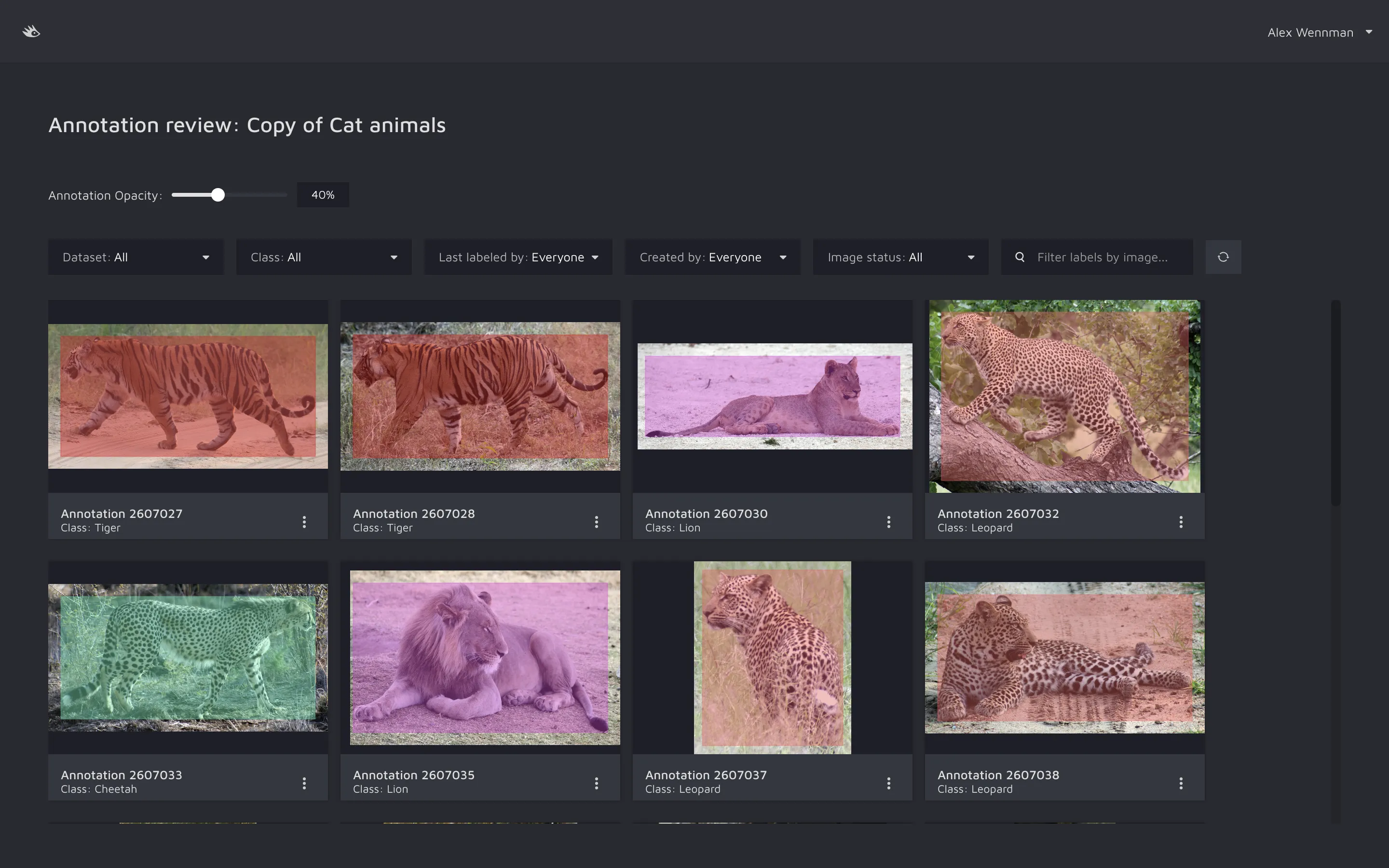 - The Last labeled by filter lets you filter results to find annotations that were last edited by one user;